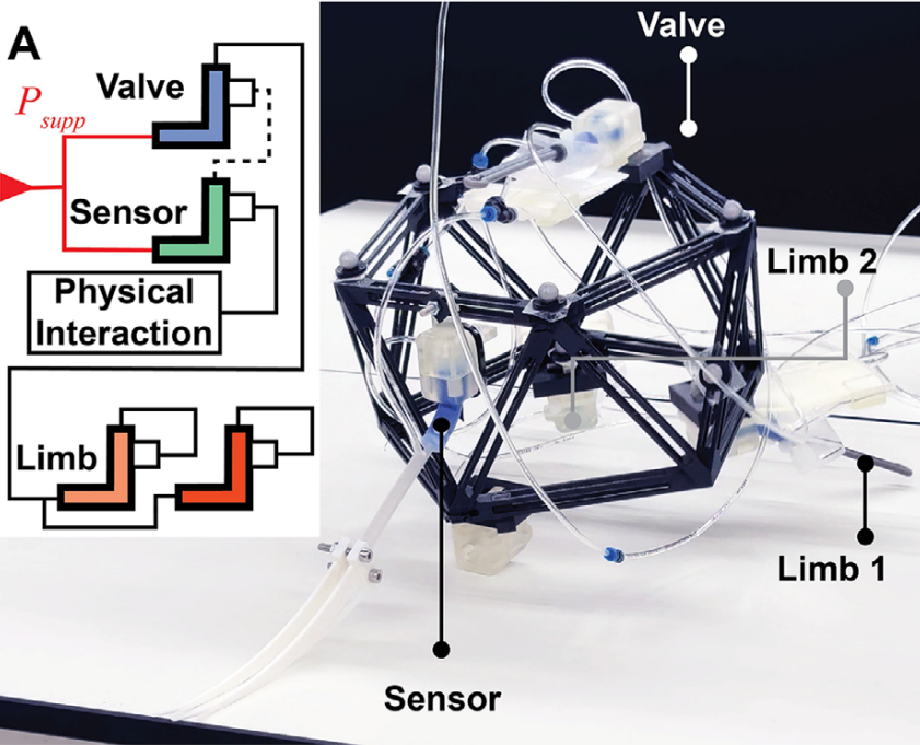 要让机器人感知环境,需要传感器;要让它动起来,需要执行器;要协调动作,需要阀门和控制电路——每个功能都要对应专门的组件,导致机器人结构复杂、体积难缩小,还特别依赖电子设备。