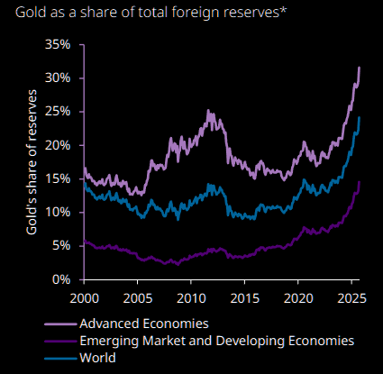 在新兴市场储备方面,需求端同样具备结构性支撑。目前新兴市场柄家的黄金储备量相较于发达国家仍有较大差距,具备“追赶”发达国家水平的空间。分析指出,如果有地缘政治紧张局势升级,新兴市场的黄金购买速度可能会加快,从而为金价提供强有力的结构性支撑。