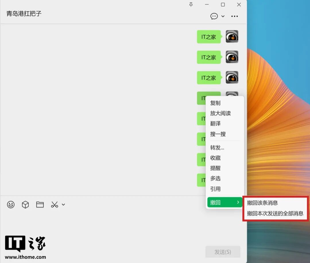 在这里,IT之家小编需要说个注意事项,甭管是手机端还是 PC 端,有诸多用户对“撤回本次发送的全部消息”的使用存在误解。