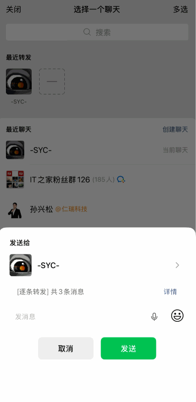 想要触发该功能,要点在于“一次发出”,也就是说多条消息必须是一次发出,例如多选消息后选择逐条发送的操作。