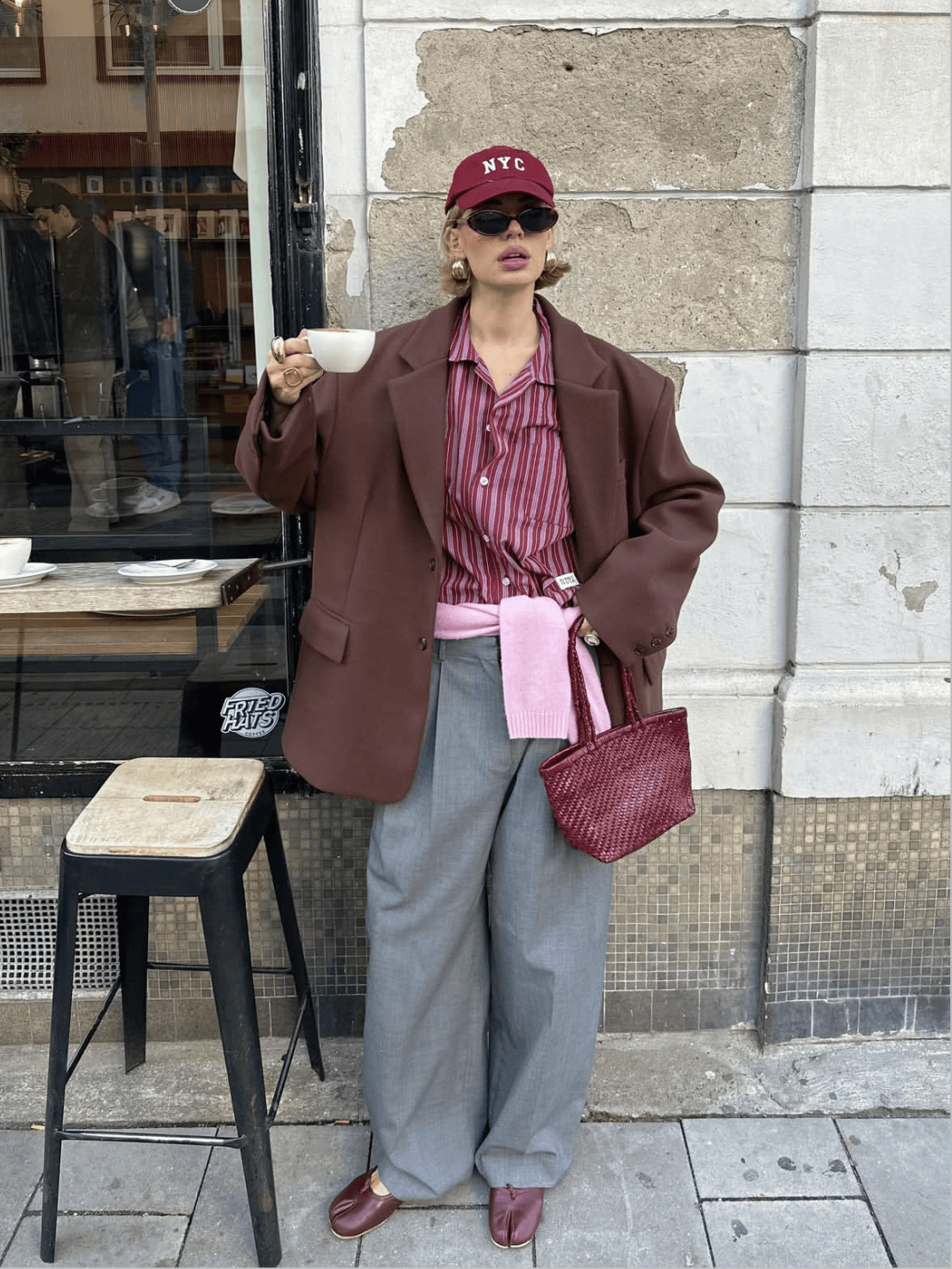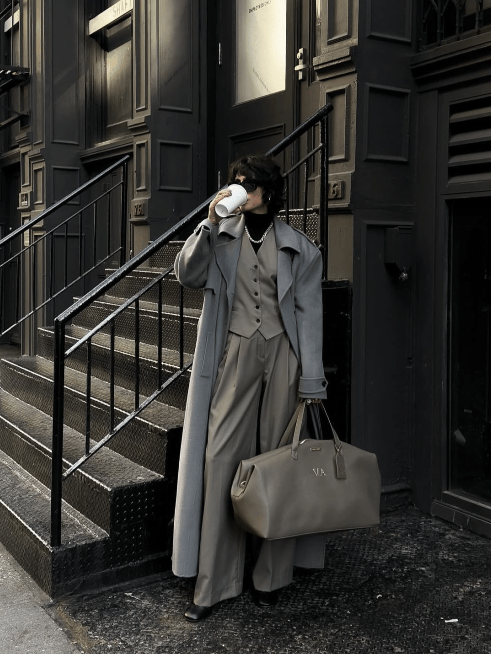 她的衣橱以高级中性色组成,基本都是灰色、燕麦色、驼色和黑色,最多一点酒红色,但搭配绝不无聊。