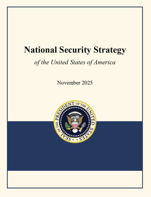 美国川普政府公布最新、2025年版《国家安全战略》。图为报告封面。 图:翻摄“X”@LyleJMorris