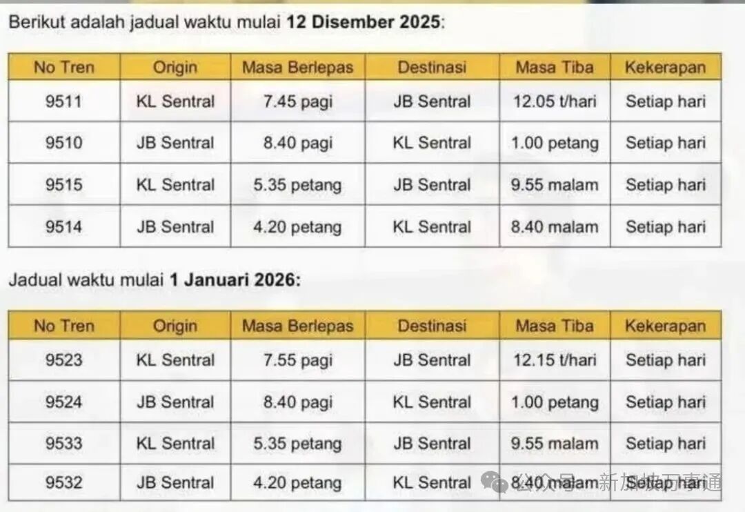 12月12日,上午8时40分,从新山中央车站向北开动至吉隆坡的电动列车服务正式启动。