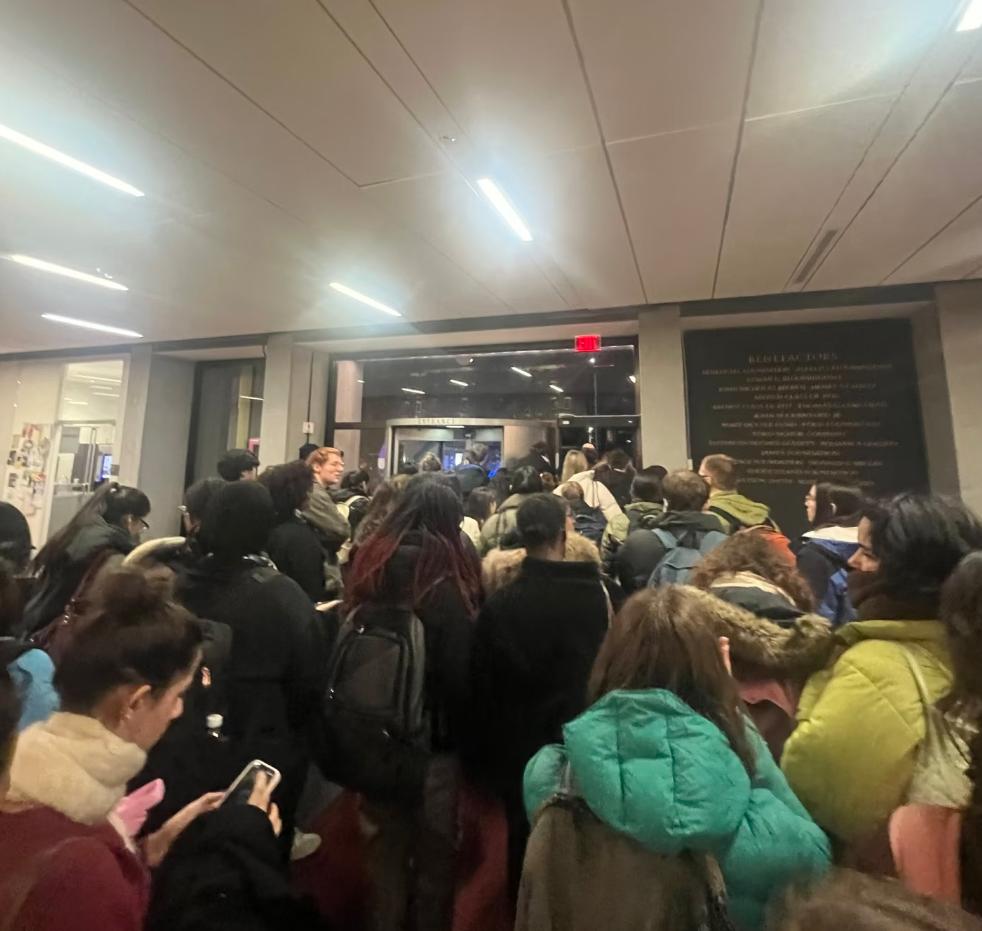 正在布朗大学访问的中国留学生梁同学告诉红星新闻记者,他和其他同学在经过漫长等待后终于被放出图书馆。他们深夜坐上校车,被警车护送着转移到学校体育馆。梁同学表示,体育馆内有水和食物,感觉很安全。体育馆外不仅有“超多警车”进行警戒,天上也有直升机在盘旋。他和同学们进入体育馆之前,还被警察进行了严格的搜身。