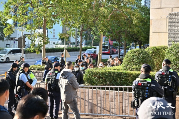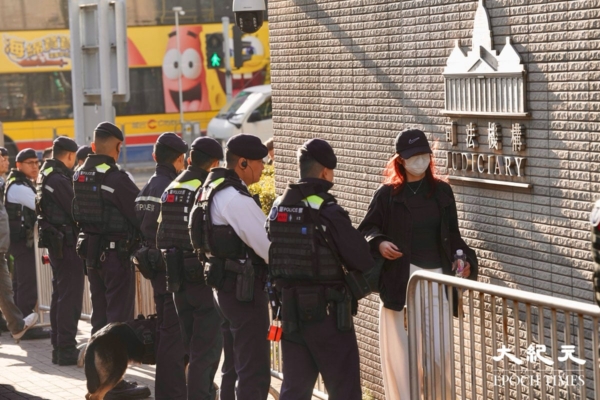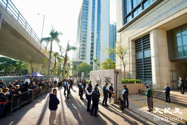 壹传媒创办人黎智英与《苹果日报》三家相关公司被控违反《港区国安法》及发布煽动刊物的案件,今早(15日)10时在西九龙裁判法院裁决。今早逾百人在法院外排队等候旁听,包括多国领事馆人员。有大量警员在场戒备。部分市民昨日已到场等候。