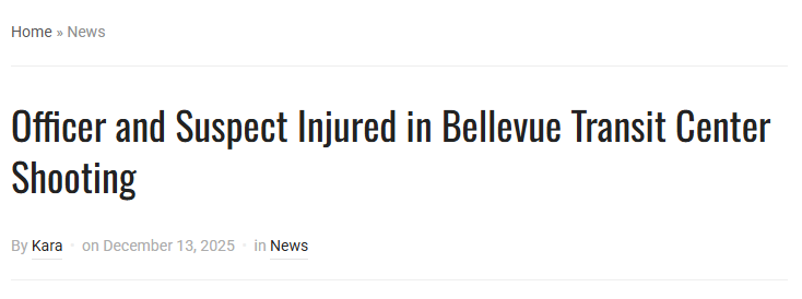 周五(12日)下午,贝尔维尤交通中心(Bellevue Transit Center)发生一起涉警枪击事件,金县独立武力调查小组(KC-IFIT)已介入展开独立调查。