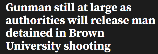 当局最新通报称,13日致命枪击两名布朗大学学生、击伤九人的枪手,截至周日晚间仍在逃。