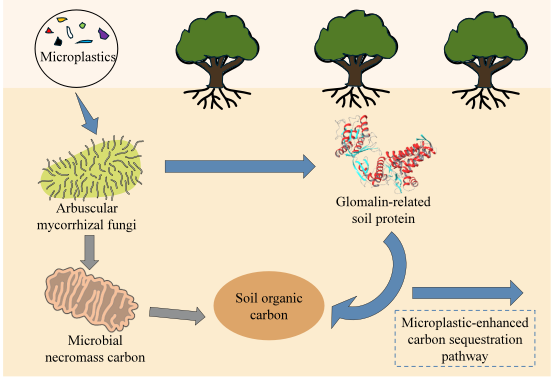 微塑料通过丛枝菌根真菌与微生物过程调控土壤碳固存机制。研究团队供图
