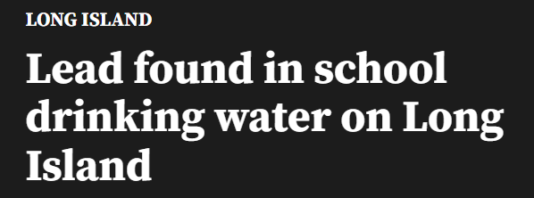 根据纽约盅汤生部发布的一份新报告,长岛地区近60个学区的饮用水中检测出铅含量超标。