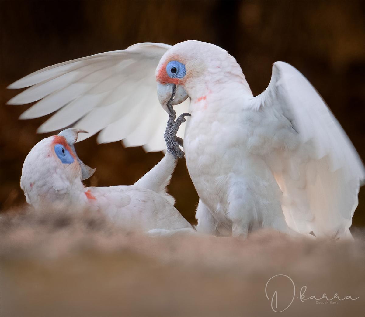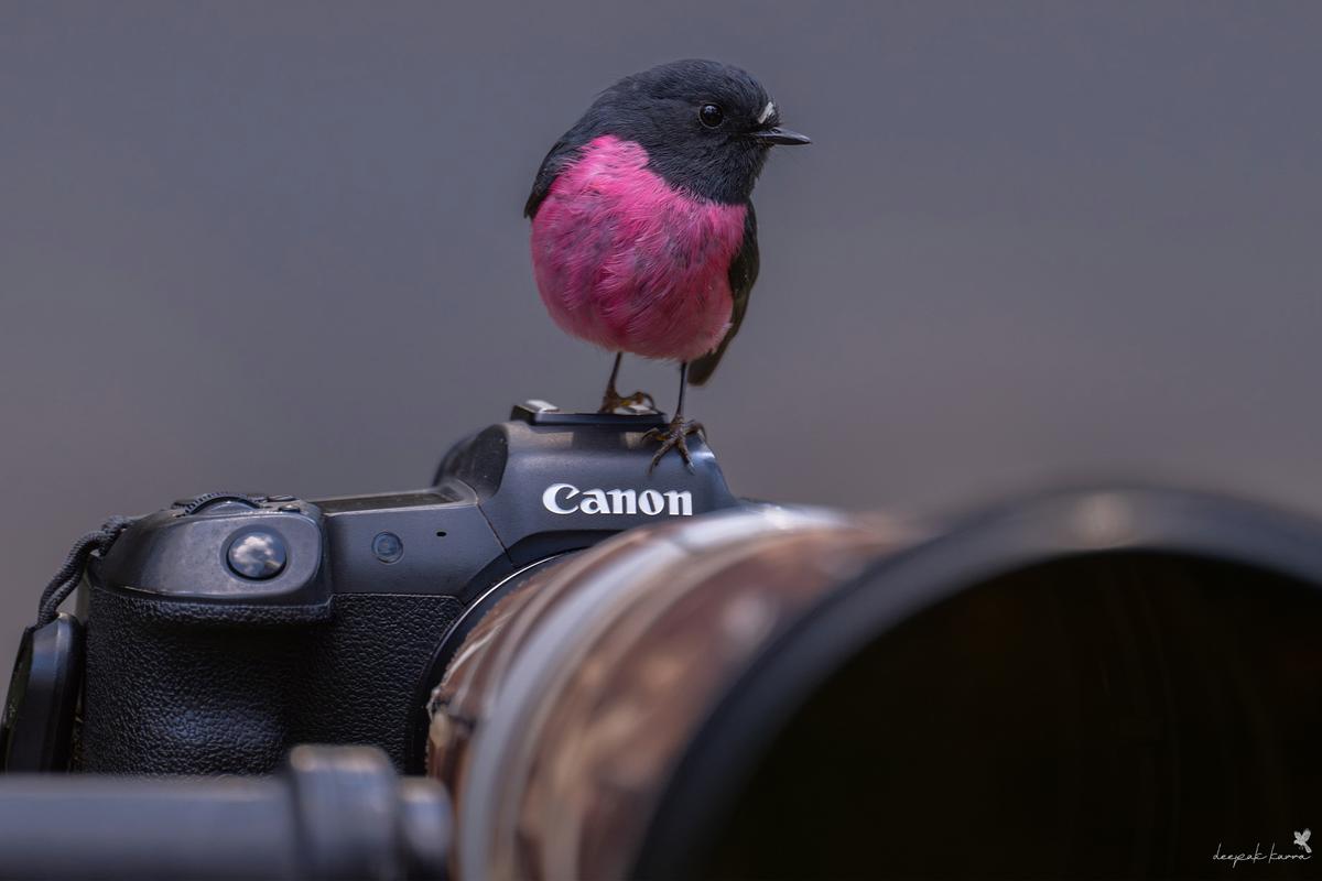 粉红知更鸟最终成了他最钟爱的拍摄对象。卡拉最后一次见到粉红知更鸟是在维多利亚州墨尔本东北方向一个半小时车程的亚拉山脉(Yarramountains)。他说,他和他的观鸟伙伴在那里认识了一只特殊的粉红胸脯的雄鸟(仅雄鸟的胸部呈现鲜艳的荧光色,雌鸟则呈暗淡粉色)。他们给这只鸟起了个极不阳刚的名字:粉粉。