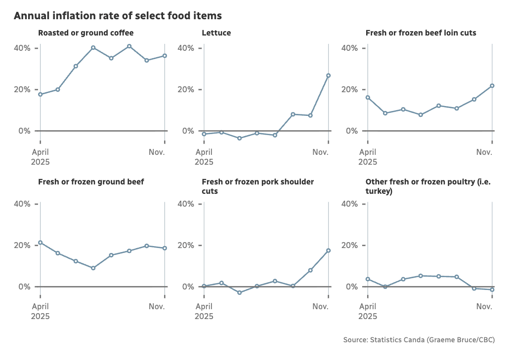 这是加拿大统计局在其消费者价格指数中追踪的所有食品杂货中年度涨幅最大的,使得烘焙咖啡或研磨咖啡成为赢家,而我们这些对咖啡因上瘾的人,嗯就要多花钱了。