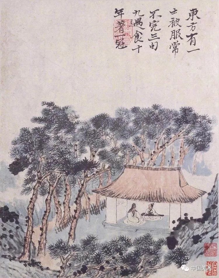 石涛擅长山水,常体察自然景物,主张“笔墨当随时代”,画山水者应“脱胎于山川”,“搜尽奇峰打草稿”,进而“法自我立”。所画的山水、兰竹、花果、人物,讲求新格,构图善于变化,笔墨笔墨恣肆,意境苍莽新奇,一反当时仿古之风。
