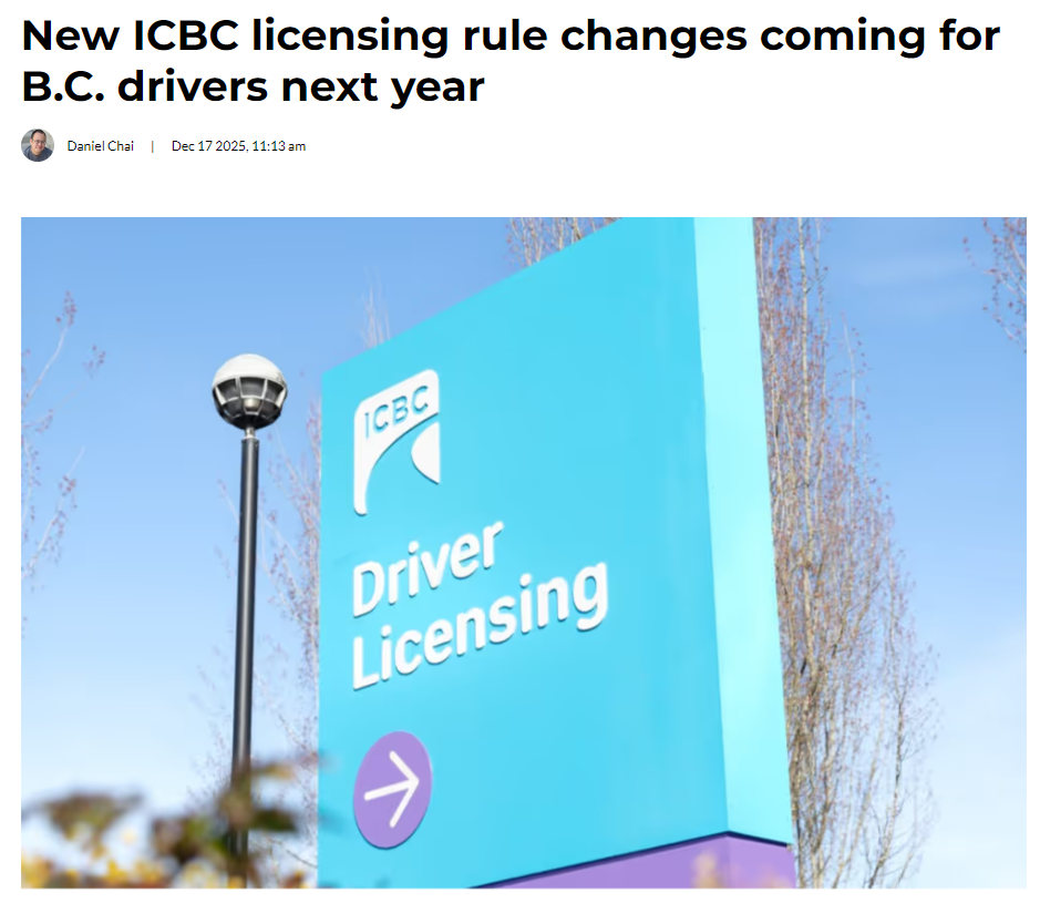 BC 省驾照制度将迎来25年来最大调整,2026年正式生效!