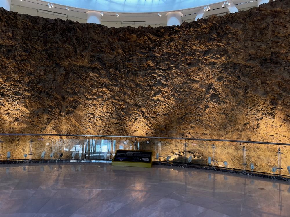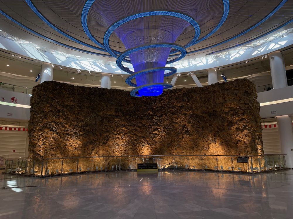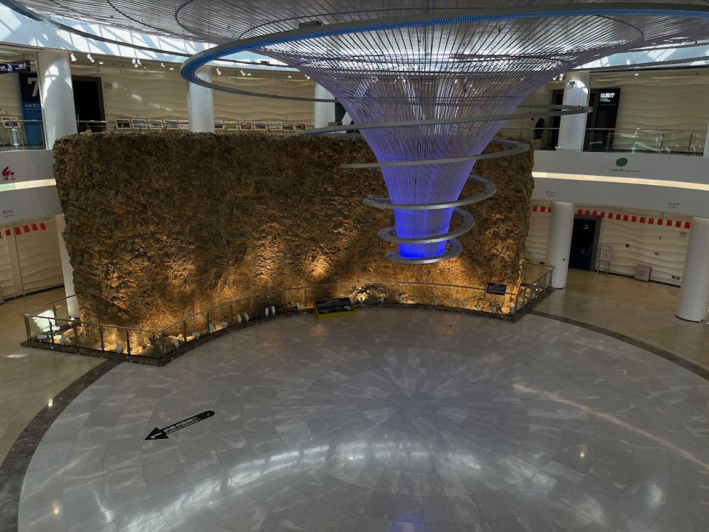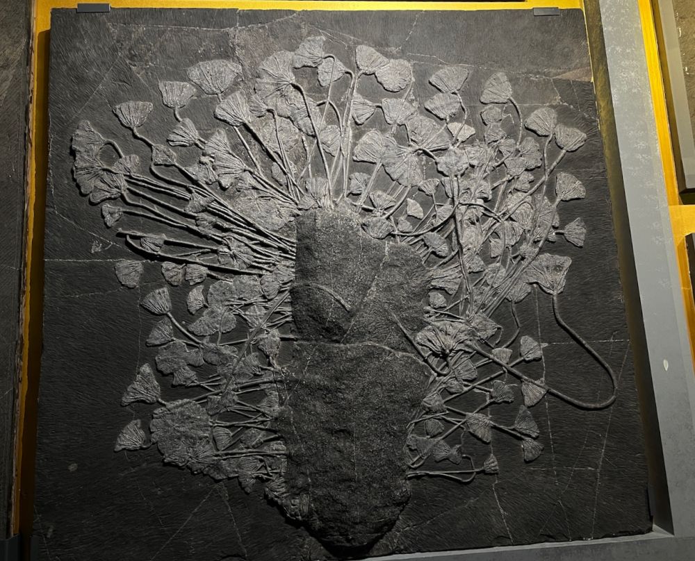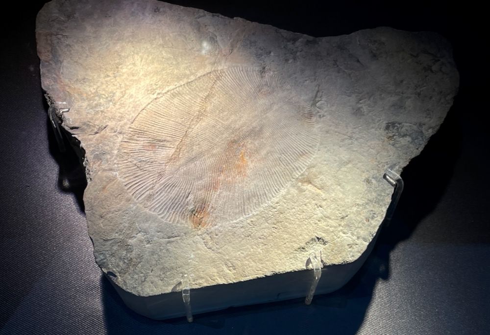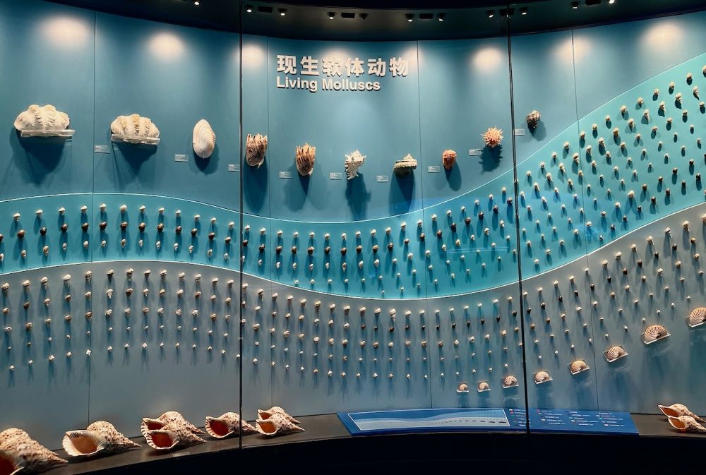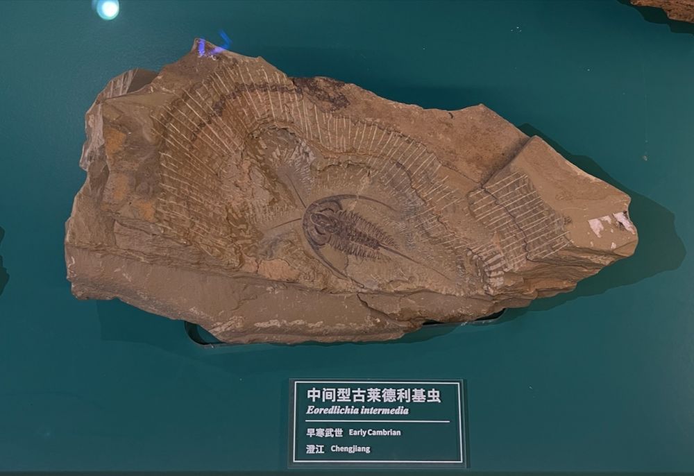 这样一个博物馆,怎能不去看看呢?会议之余,我们叫了一辆滴滴来到博物馆。博物馆设计独特,外观看上去好似一个巨大的摇篮,寓意生命的起源。博物馆集收藏、研究、展示、和教育为一体,不仅收藏澄江化石地的化石,而且收集了全球各地、代表各地质年代的珍贵古生物化石,以及现生动植物标本。馆内收藏化石、标本6万余件,其中澄江本地化石5万件,其他地区、地质时期的化石以及现生动物标本1万余件。走进博物馆,大厅穹顶中央一个巨大螺旋状艺术装置映入眼帘,这是生命演化树,每一个分枝代表一个生物物种。生命演化树下方,矗立一面高大的化石墙。它是埋藏澄江化石的真实地层,记录了寒武纪生物的生活场景。“5亿多年前,我们脚下的这片土地还是一片汪洋大海,远古生物在这里繁衍生息。突然,一场地质灾难降临,这些生物被泥沙掩埋,窒息死亡,经过漫长岁月形成化石” ,讲解员介绍说。澄江生物群至今发现和记录的化石有20多个门类,300余种,几乎涵盖动物界的所有现生门类和灭绝门类。澄江生物群化石不仅种类丰富、数量众多,而且保存了大量地球最早的软躯体动物化石,展现了5.18亿年前海洋生物的完整面貌。是研究地球早期生命演化、生物多样性起源的重要化石基地,被誉为现代生物演化树之根,是20世纪最惊人的科学发现之一。