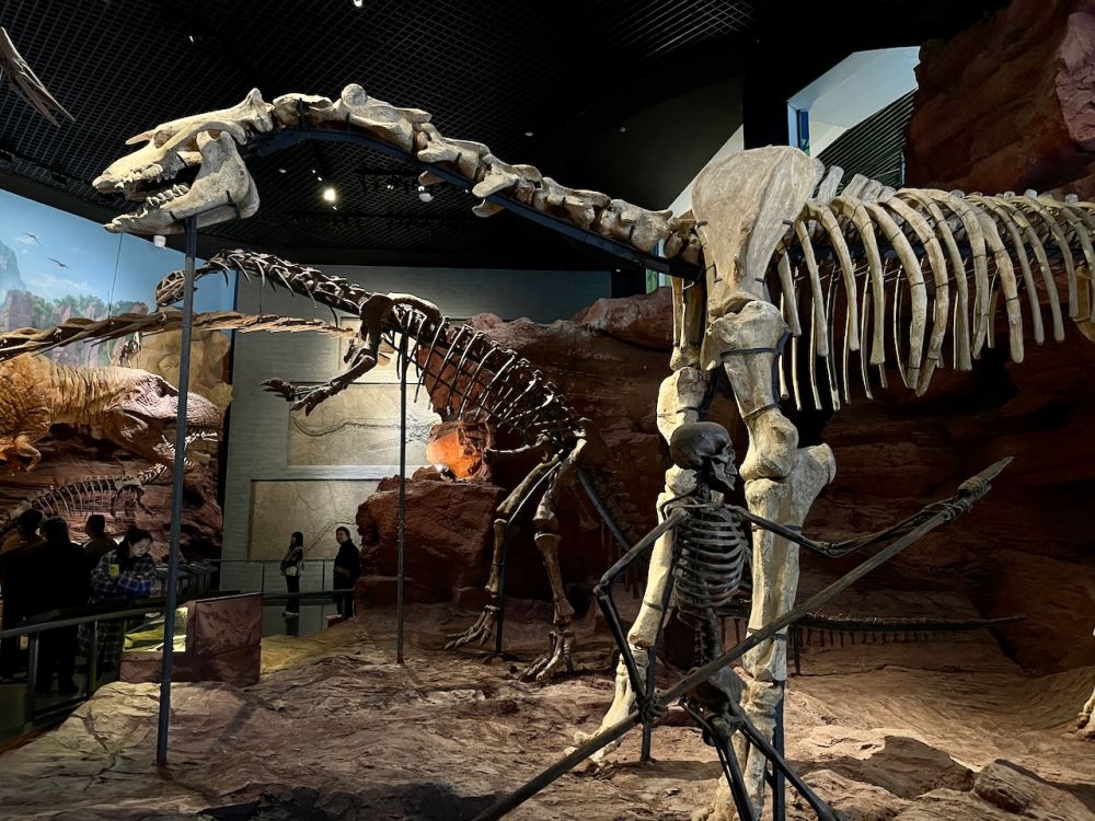 从寒武纪后的奥陶纪到白垩纪,地球先后经历了5次生物大灭绝。许多生物灭绝了,新的生物又产生了。从脊椎动物到两栖动物,从鱼到鸟,从爬行动物到哺乳动物。进入新生代后,灵长类哺乳动物开始出现,逐渐进化出人类。馆内展示了各地质时期具有代表性的生物化石,勾勒出波澜壮阔的地球生命演化过程。