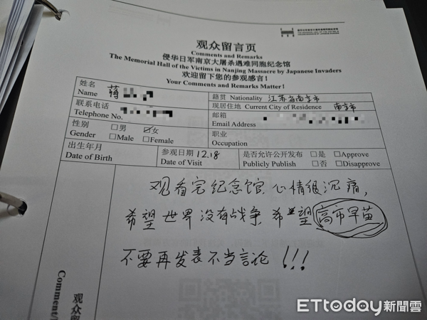 不同于其他博物馆,这里的多数人都安静地看着展陈,在常设展“南京大屠杀史实展”尾端的四本观众留言簿,成为抒发情绪与观点的重要窗口,也可借此一窥大陆民众对日态度。南京人对这片土地曾发生的苦难感受最深,有市民留言:“心情很沉痛,希望世界没有战争,希望高市早苗不要再发表不当言论”。