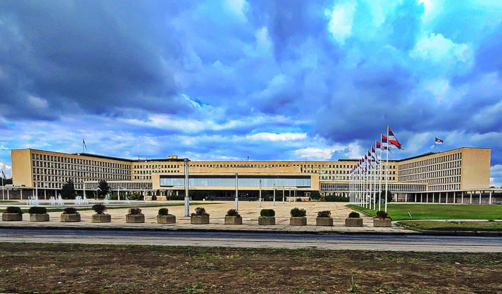 新区的塞尔维亚宫,是规模宏大的政府建筑,原为南斯拉夫联邦执行委员会总部。