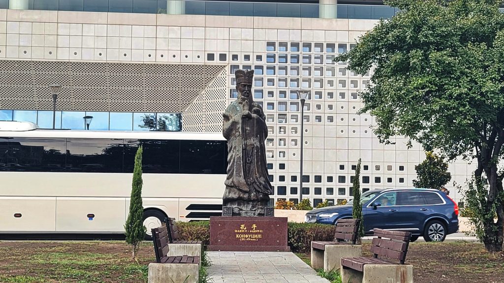 在中国大使馆原遗址上建立的中国文化中心,北约误炸之地,如今立碑纪念,警示战争与铭记和平。