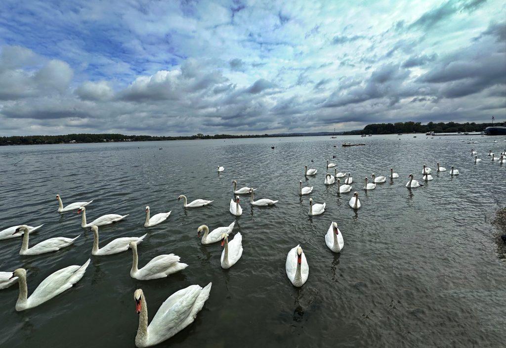泽蒙小镇的多瑙河畔,常有成群的天鹅悠然游弋。在薄雾笼罩下,白羽在水面上闪着柔光,宛如漂浮的雪花。
