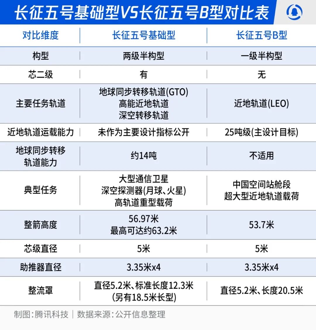 长征五号运载火箭根据任务需求形成了基础型(标准型)和B型两种主要构型,二者在总体技术基础上保持高度一致,但在结构设计和任务定位上有所区分,共同构成我国重型运载火箭体系的核心力量。