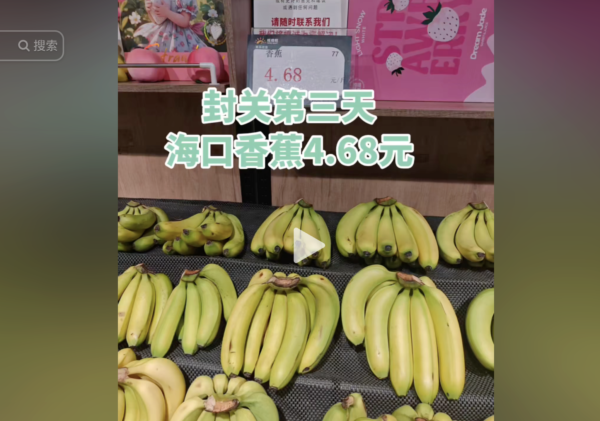 20日,有博主拍视频说,封关第三天,海口香蕉4.68元/斤,内地香蕉仅1.68元/斤。