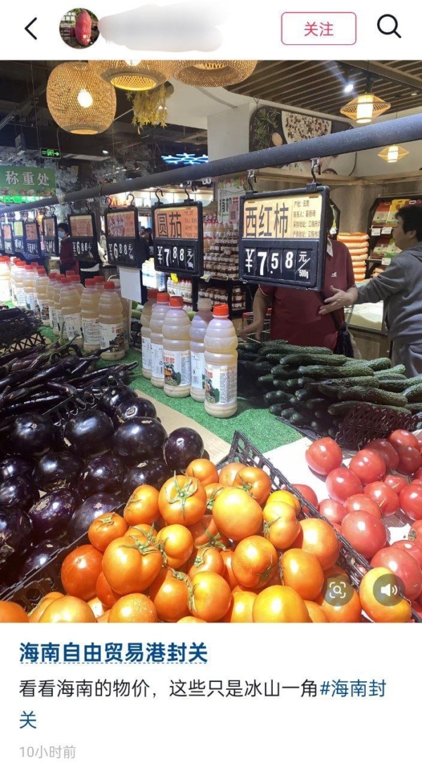 海南全岛封关后 网友抱怨物价飙高遭删文