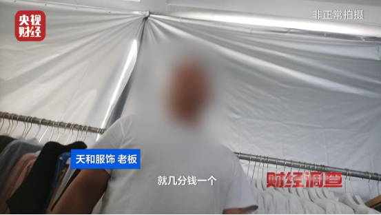 根据线索,记者来到华南地区一家尾货批发市场展开深入调查。所谓“尾货”,本是服装工厂在客户订单之外额外生产的部分服装,目的是保障合格产品供货量。订单交付后,这些全新尾货会被工厂低价处理,属于未经穿着的新品。