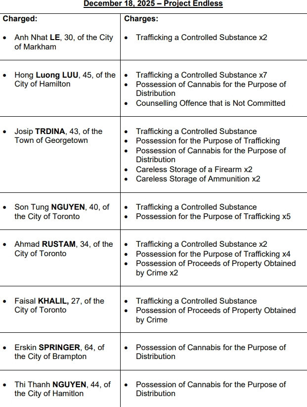 10 月25日,调查人员在大多伦多地区(GTA)的多处住宅执行了5份搜查令。行动结果是8名嫌疑人被起诉,共提出34项指控。