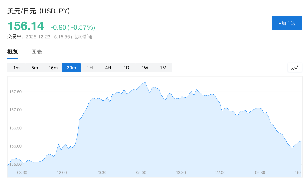 日元连续第二天走强,美元兑日元一度突破156关口。周一,日本财务大臣片山皋月明确表示,针对背离经济基本面的汇率波动,日本拥有采取大胆行动的“自由裁量权”(free hand)。此前,尽管日本央行将借贷成本上调至30年来的最高水平,日元汇率不升反跌,不仅兑美元汇率走软,兑欧元更是一度触及历史新低。