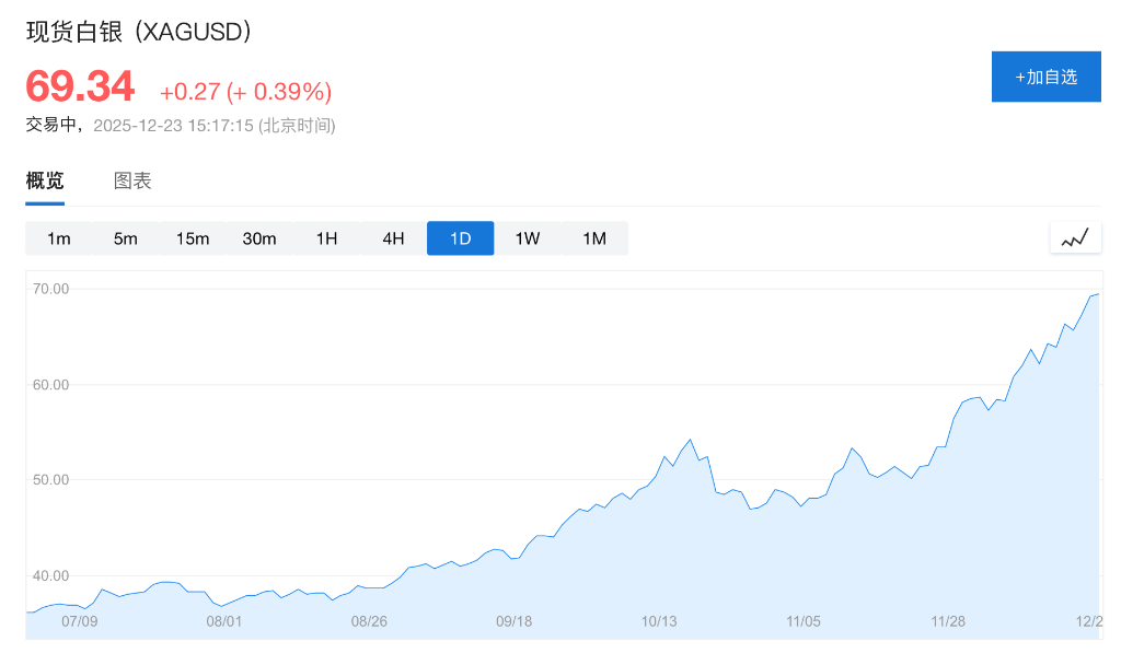 现货黄金涨0.85%至4481.5美元/盎司,现货白银涨近0.4%至69.34美元/盎司,伦敦期铜涨0.14%至11942美元/吨,布伦特原油跌超0.2%至61.44美元/桶