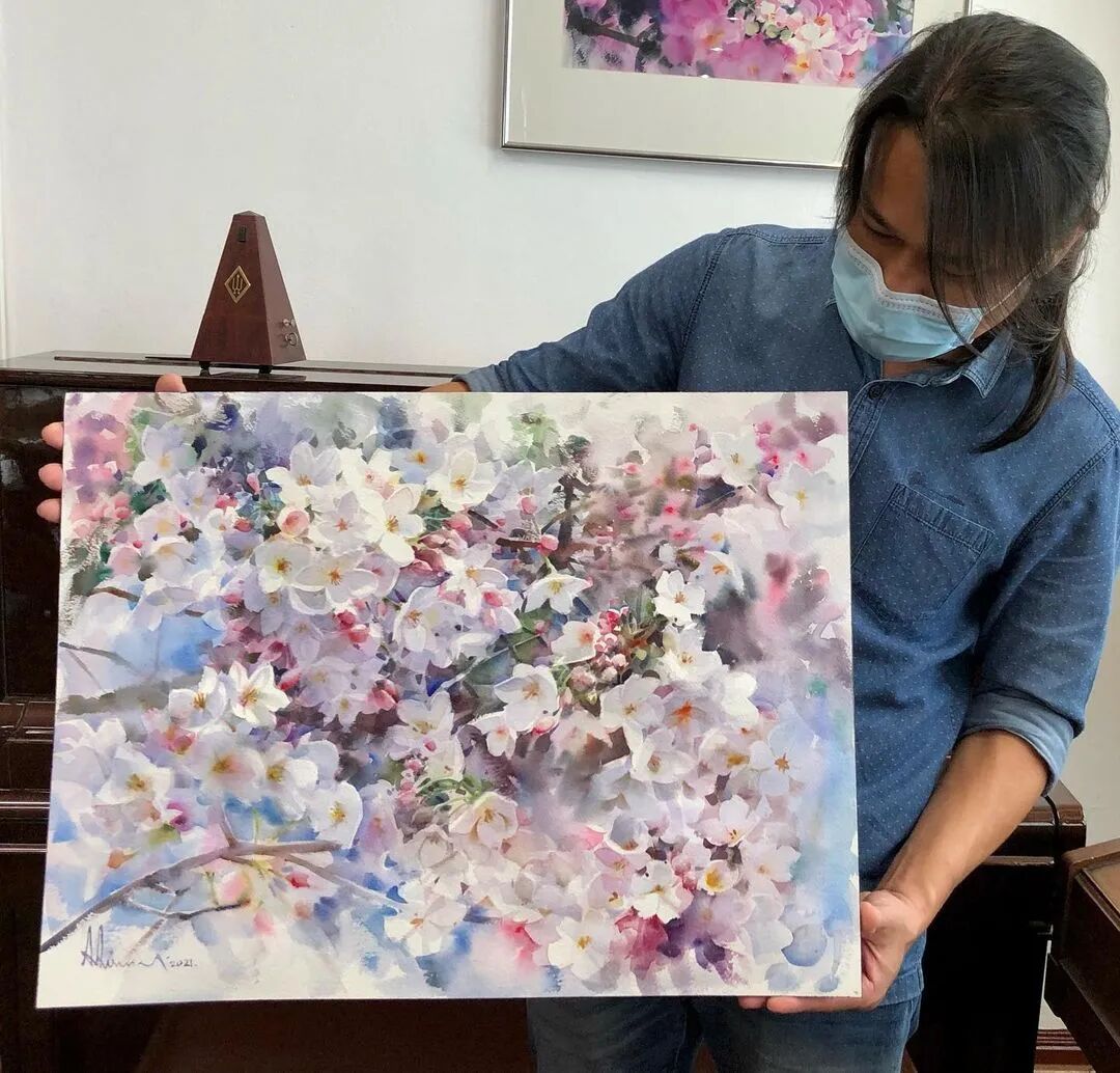 但他的水彩作品更有一种属于水彩的水痕大笔触般的朦胧感