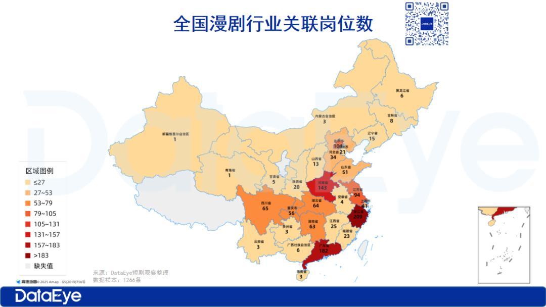 依托互联网生态和成本优势,杭州以189家关联企业位居岗位数榜首,成为当之无愧的“漫剧制作第一城”。