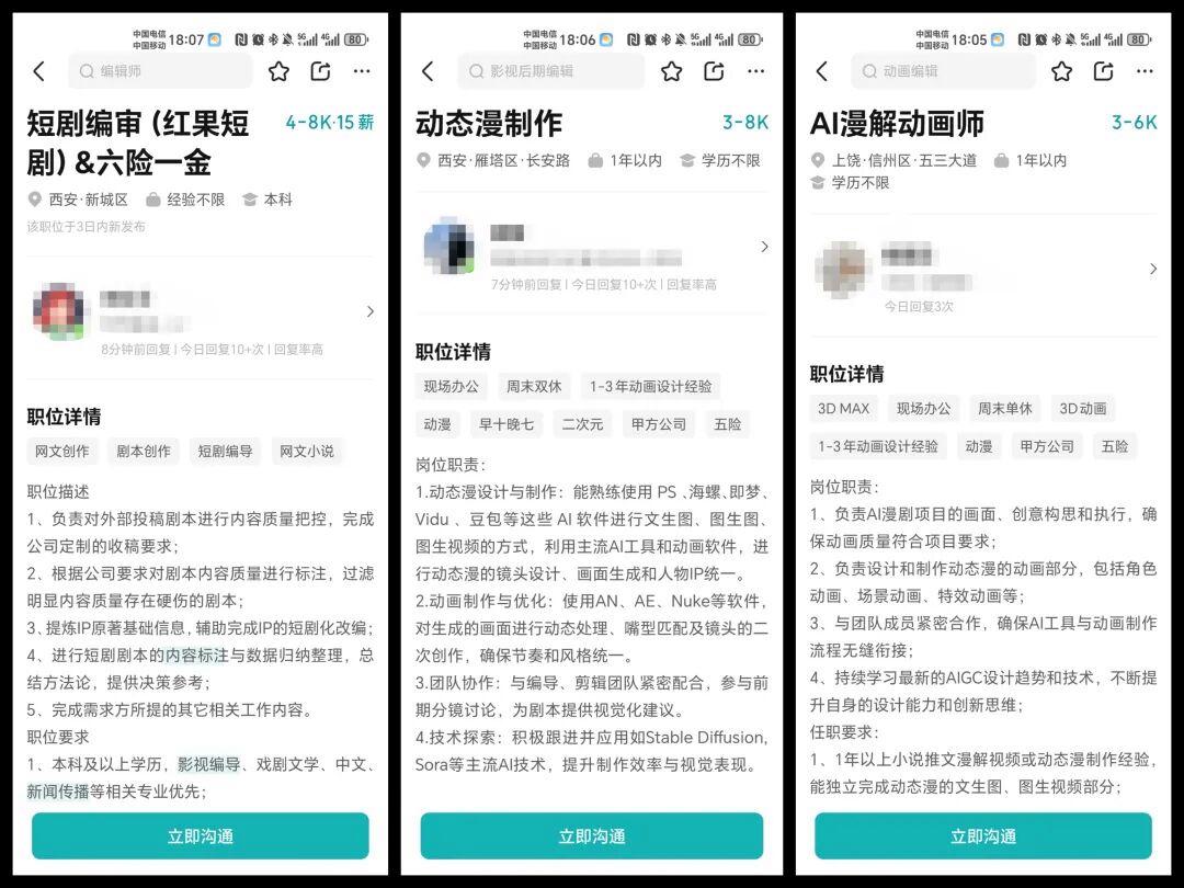 一方面说明行业对于“内容创作+AI技术”的复合型人才缺口较大,准入门槛低,另一方面也说明企业对该赛道的长期看好,愿意培养更多人才。