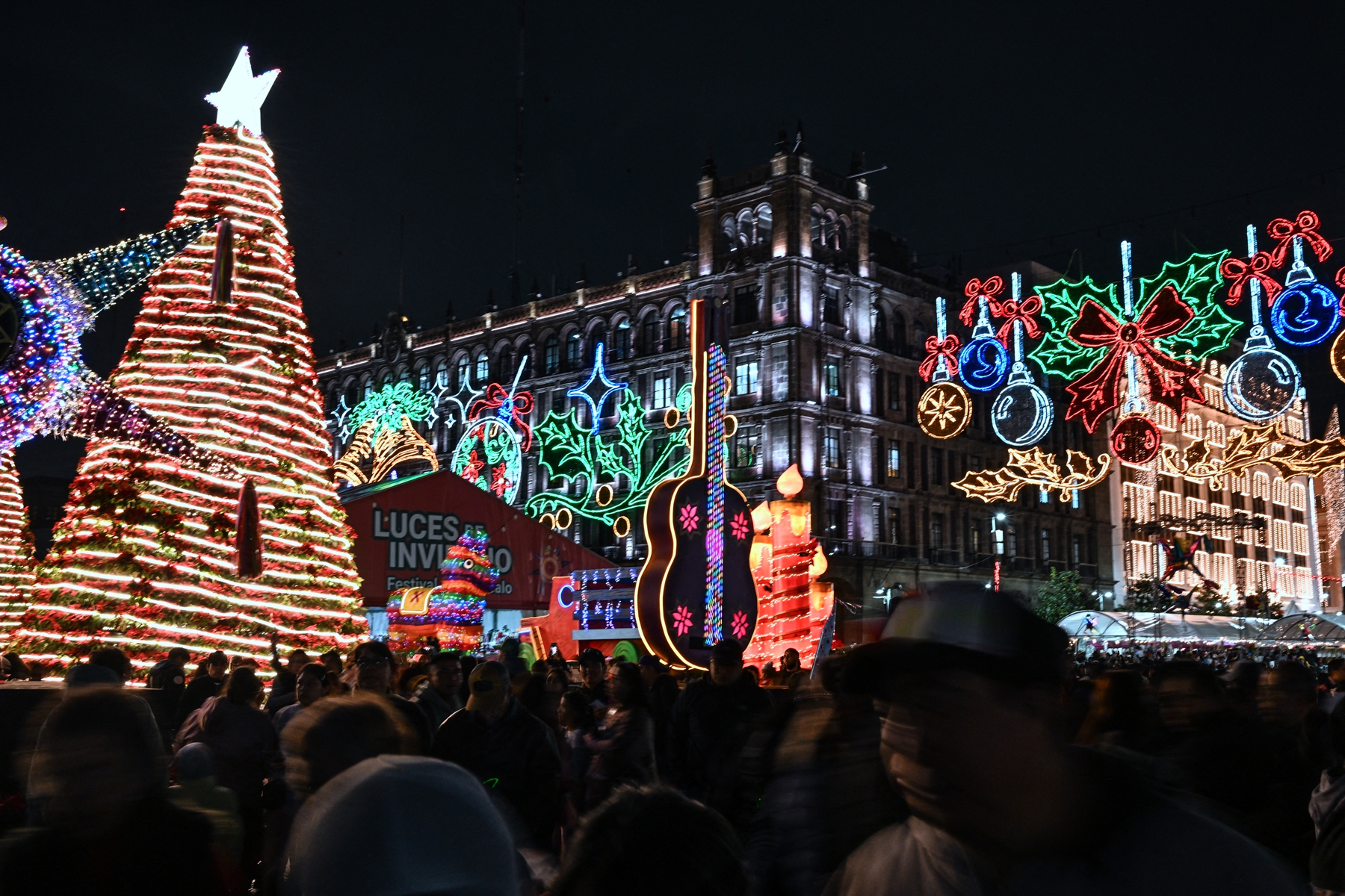 2025年12月22日,人们在墨西哥城索卡洛广场参加圣诞灯光节活动。(Yuri Cortez/AFP via Getty Images)2025年12月22日,人们在墨西哥城索卡洛广场参加圣诞灯光节活动。(Yuri Cortez/AFP via Getty Images)