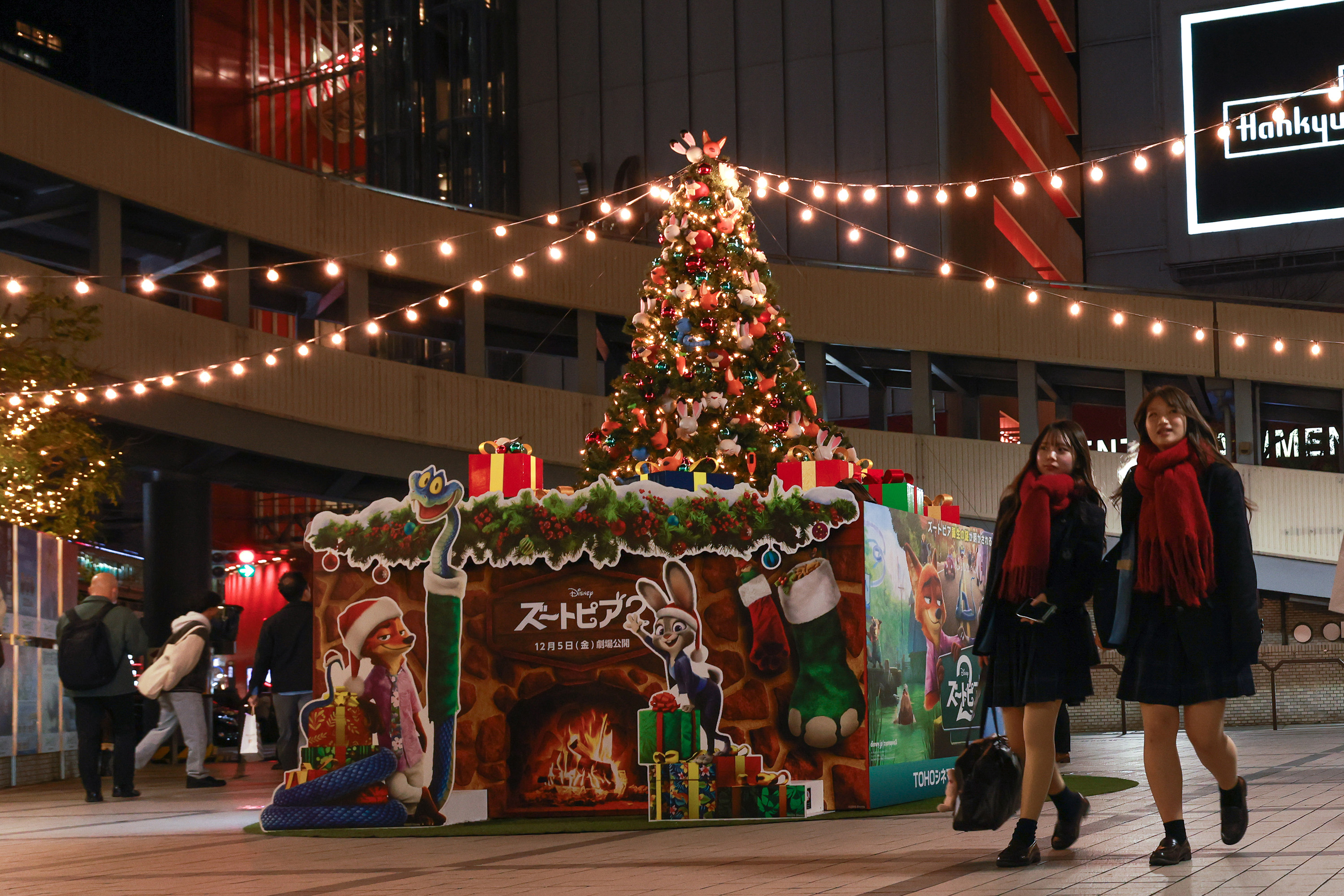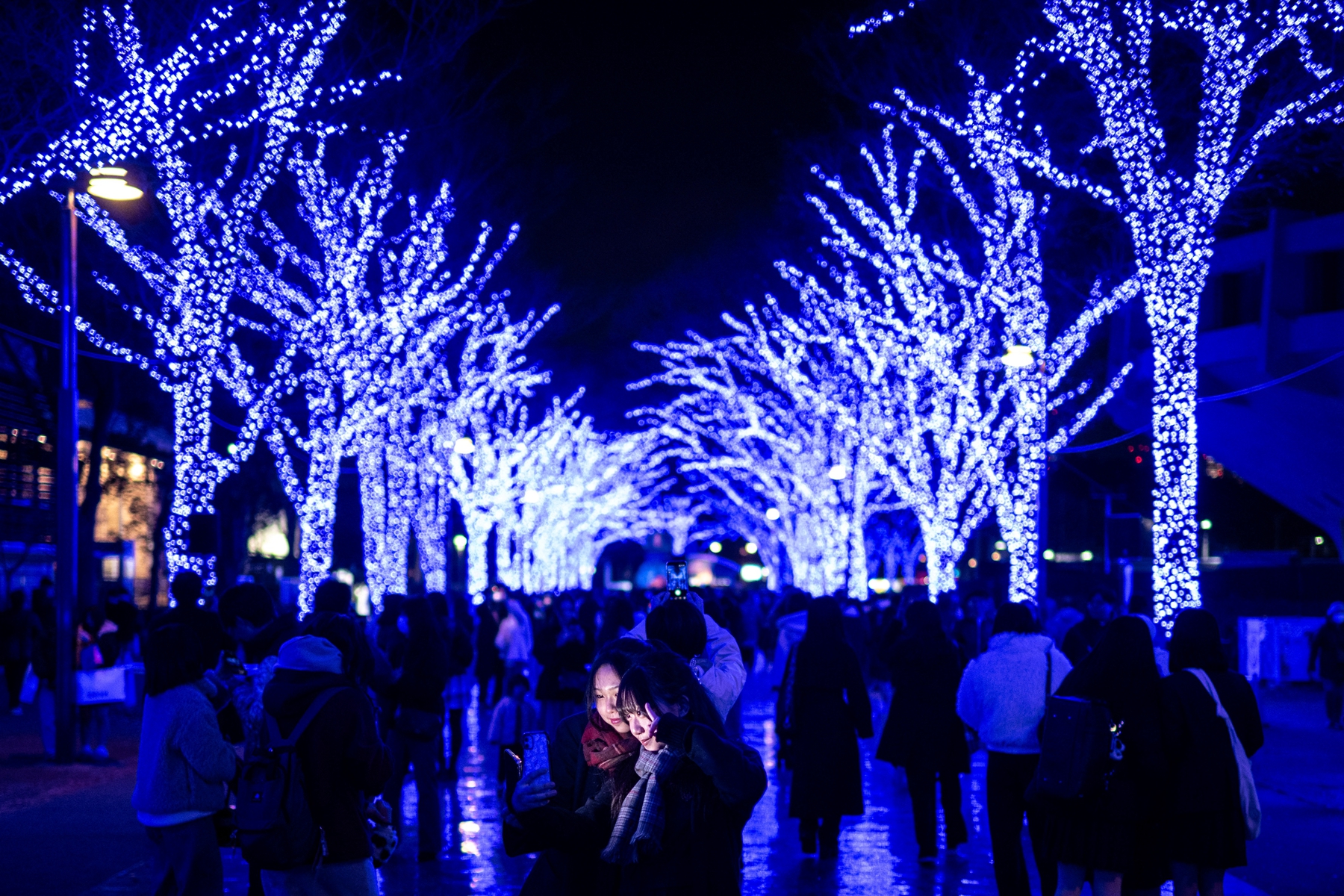 2025年12月19日,人们在东京都涩谷区一处装饰着圣诞彩灯的行道树旁,享受节日时光。(Philip Fong/AFP via Getty Images)2025年12月18日,在日本大阪圣诞购物季期间,许多购物者聚集在梅田蓝天大厦(Umeda Sky Building)一棵装饰璀璨的巨型圣诞树下。(Buddhika Weerasinghe/Getty Images)2025年12月18日,在日本大阪圣诞购物季期间,购物者从一个精美的圣诞装置旁经过。(Buddhika Weerasinghe/Getty Images)2025年12月15日,人们在东京都六本木区一个公园的圣诞树前拍照。(Philip Fong/AFP via Getty Images)
