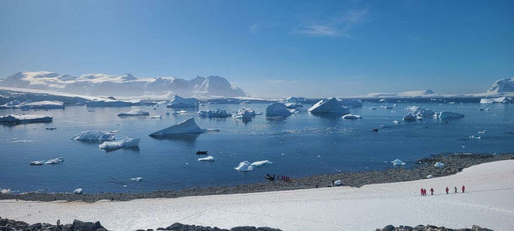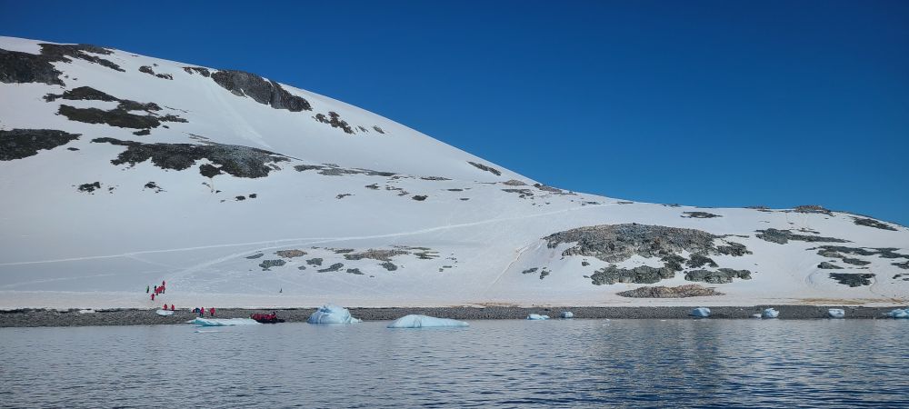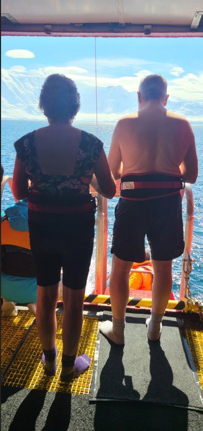 早上10:30船到Damoy Point,这里可以看到高2160米的Mount Francis雪山 ,广播通知要 开始极地跳水(polar plunge) 。头天晚上统计人数的时候,大约有一半人都举手了!探险领队Jenny说“这下我们需要准备很多热浴巾了!”