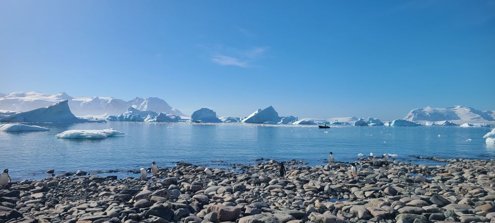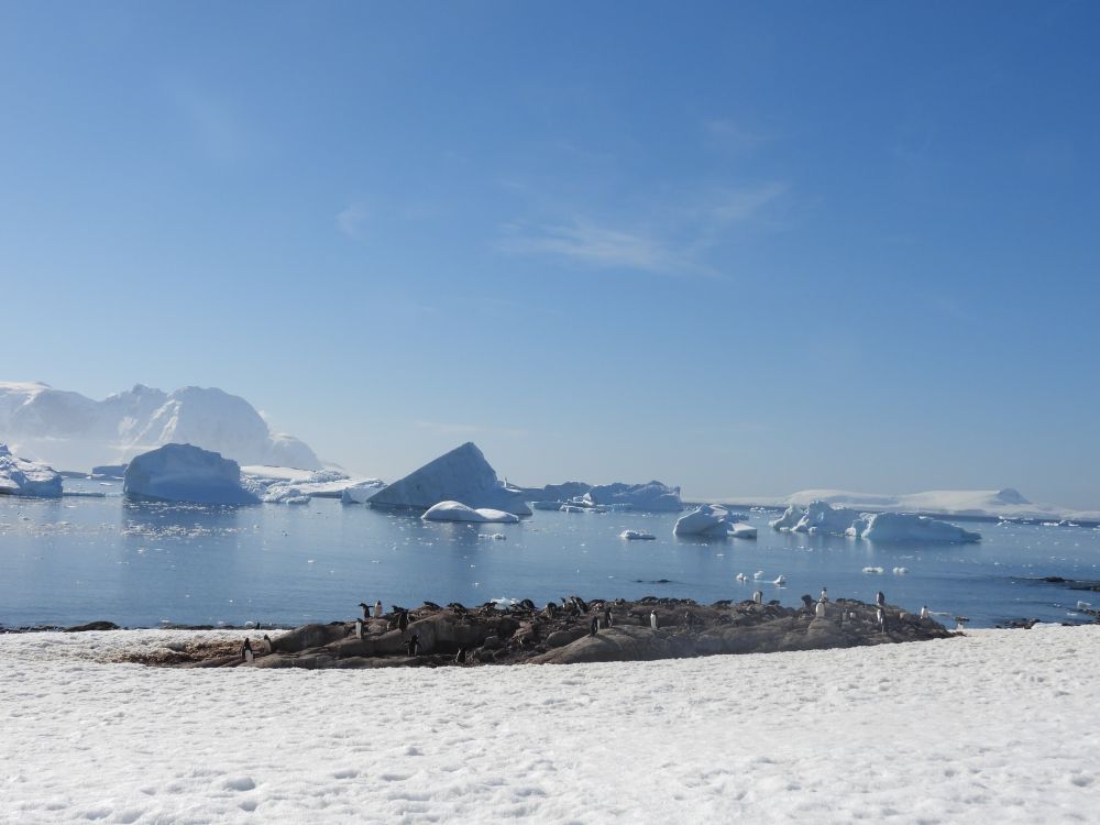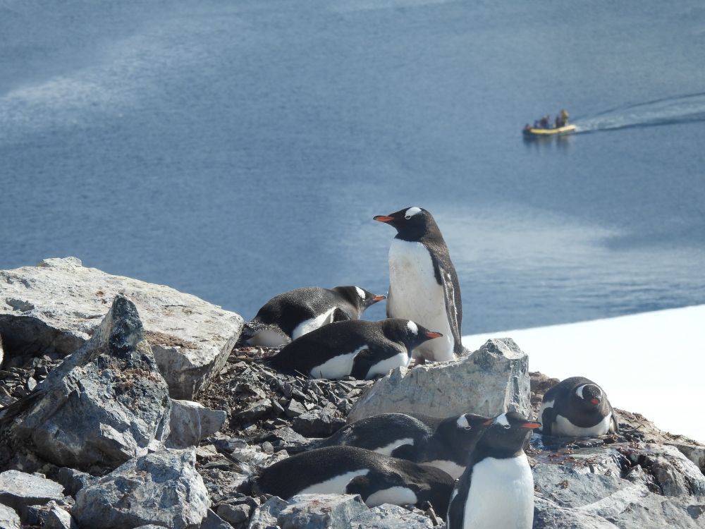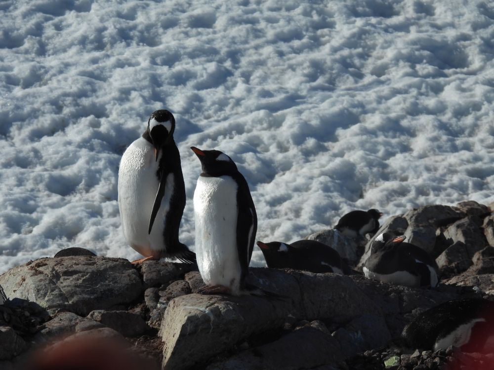 下午到了 Cuverville 岛,上岸爬雪山登顶俯瞰全景,我看有一段很陡峭,决定走到交界口就往下走,因为原来说5:30最后一班冲锋艇,我还有一个 Gentoo penguin colony 没看,于是下去那里。这里的企鹅聚集地我们可以走到很接近的地方,可以拍到很可爱清晰的照片,还注意到一直贼鸥不停地偷企鹅蛋。回到冲锋艇回去的时候经过很多非常美丽的 Iceberg, 和艺术品一样。