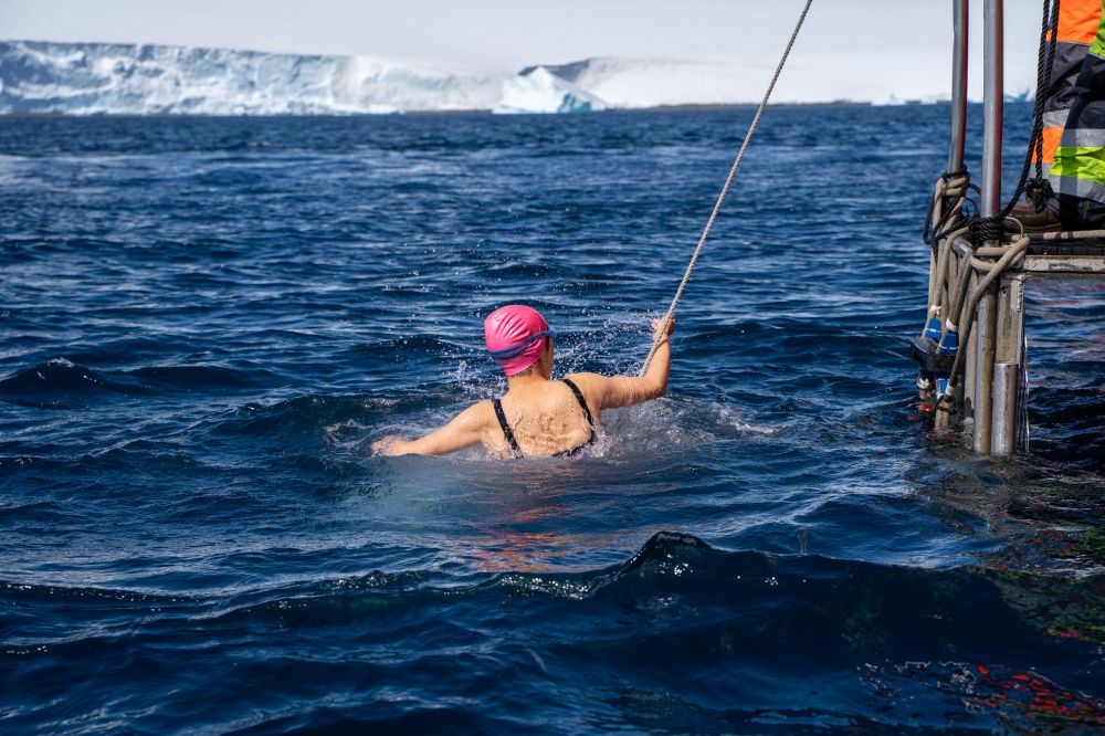 我既跃跃欲试,又有些害怕,毕竟这是非常寒冷的南極海水。可是也许一生一次,我祷告上帝保守我平安出入水。