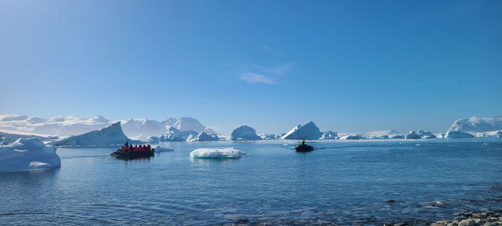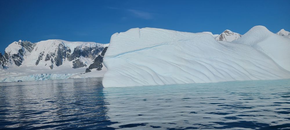 船长小心翼翼的导着船进入水道,海里无数浮冰,还有大iceberg,航道两边是高达千米的冰雪和岩石,风景自然是无边的美丽。船远处不时有鲸鱼经过,喷水甩尾巴,可行都很短暂,无法用相机扑捉住。我的室友昨晚睡不着,她说估计是前两天过德雷克海峡的时候晕船睡多了,她就一个人去甲板闲逛了两个小时,夜半无人,水面平静的像镜子,四面无声,寂静中鲸鱼的呼吸声特别明显,她说她听声找鲸鱼,看到了七条座头鲸,还拍到了一只鲸鱼尾巴! 早上告诉我,把我羡慕的流口水,眼里冒星星,想什么时候我才能拍到座头鲸尾巴呢?因为鲸鱼尾巴是可以辨认鲸鱼的,就和人的指纹似的。拍的好的鲸鱼尾巴可以上传到Happywhale网站(https://happywhale.com/org/58;svy=150703;adduser=on ),帮助科学家们跟踪鲸鱼的行动轨迹。