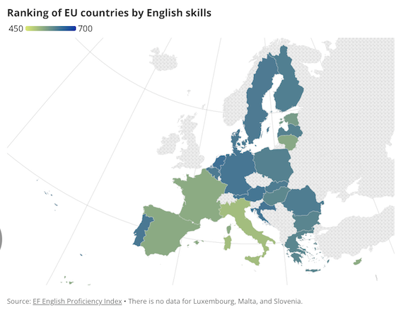 尽管英语在欧洲教学中已经广泛普及,但欧洲人的英语技能甚至人口结构方面仍然存在差距。