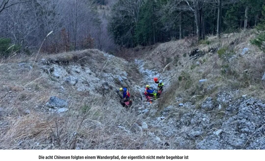 一支由八名中国游客组成的登山团队在巴伐利亚前阿尔卑斯山区徒步时发生意外,其中一人严重受伤,被直升机紧急送医。