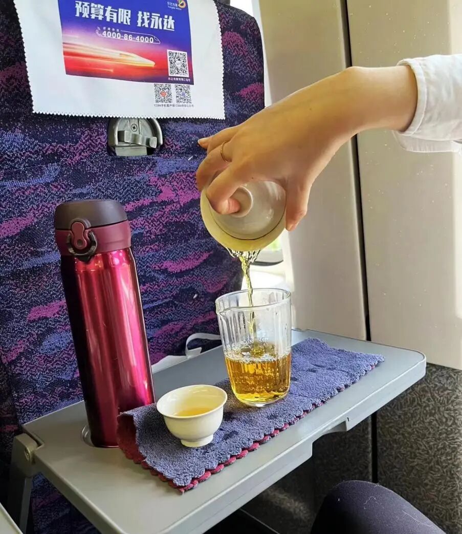 往小了算,高铁是绝佳的茶席场景,离厕所还近,慢悠悠喝几泡茶,结束一段旅程,完美。