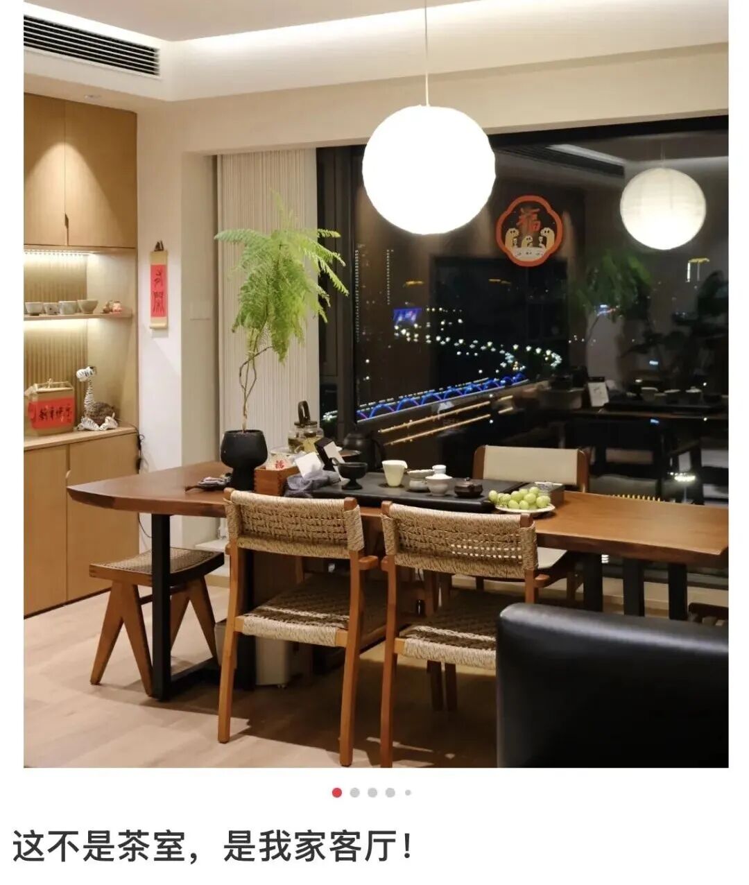哪怕家里不怎么喝茶(真的有吗),茶桌茶具也都是必备品。稍微讲究一些的,干脆把客厅做成茶室。