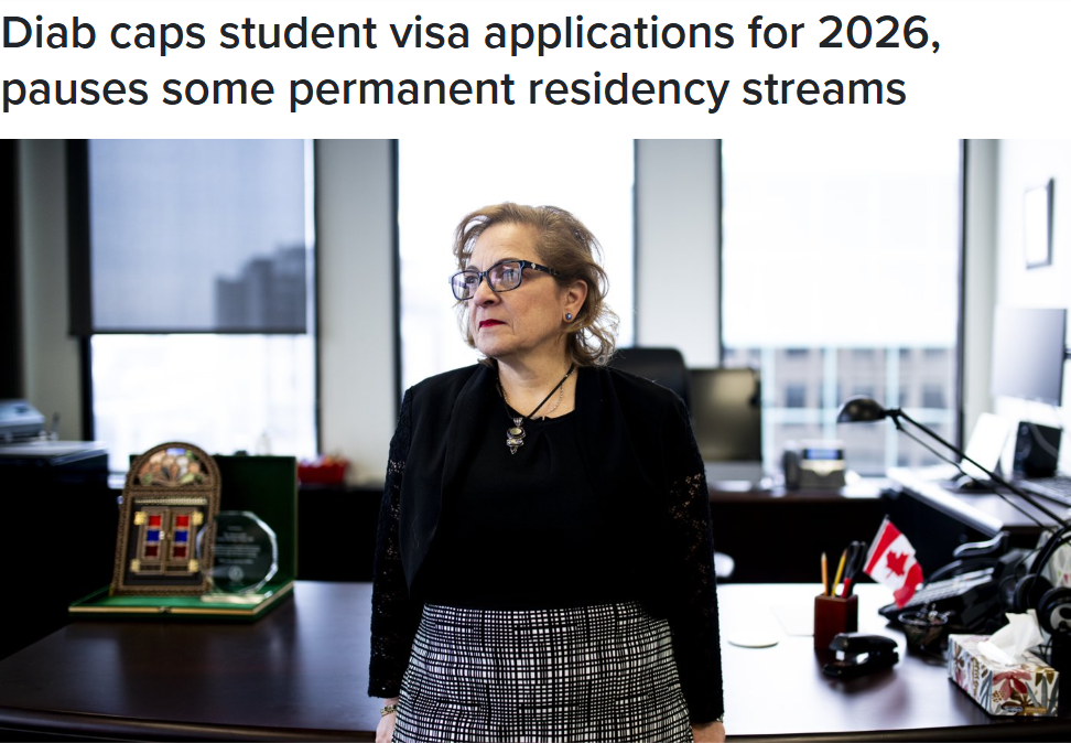 与此同时,加拿大移民部长 Lena Diab 近日发布了新的部长指示,要求留学许可申请必须附上省或地区出具的证明信,以期在新的一年将外国学生申请人数控制在不到 31 万人。