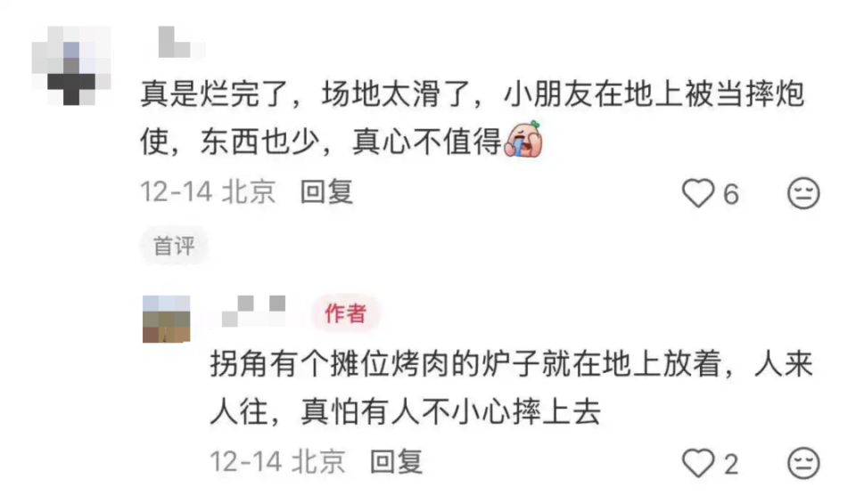 有网友为了带娃体验圣诞集市,特意早起排队,结果园内积雪没清理、场地湿滑,只能用“体验极差”四个字总结。