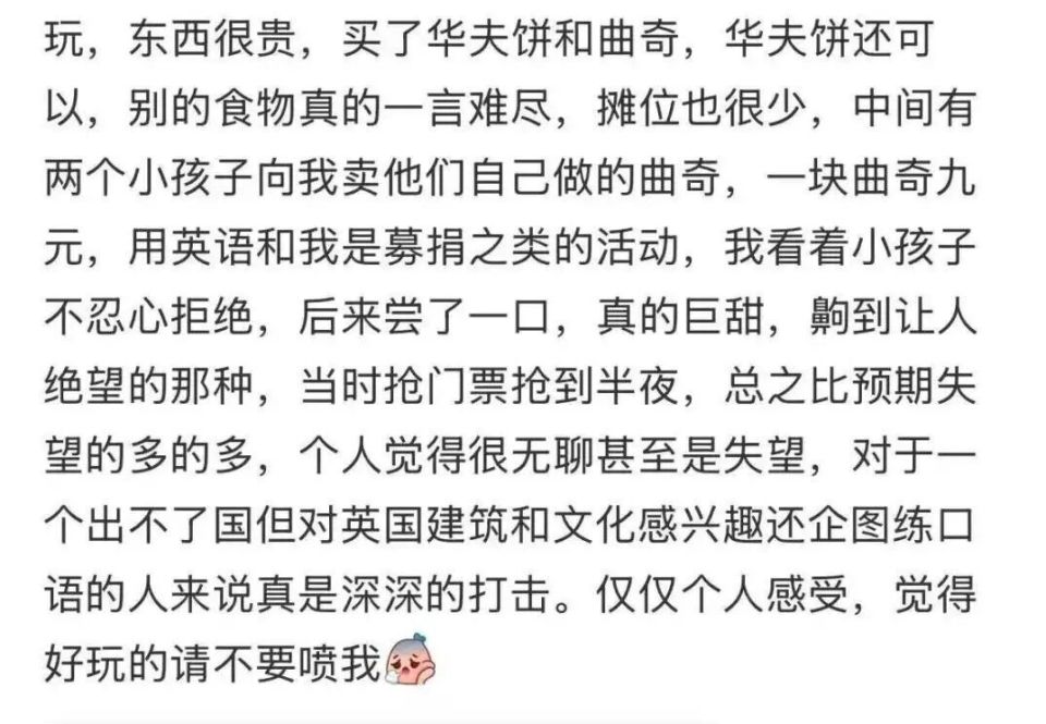 活动形式毫无新意不说,各国圣诞集市也没啥差异化体验,有网友忍不住抱怨,“合着每个人花着能去欢乐谷玩一天的门票钱进来买吃的了。”