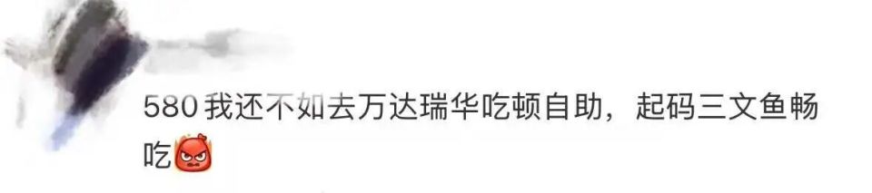 另一位网友更直白:“580我还不如去万达瑞华吃顿自助,起码三文鱼管够。”
