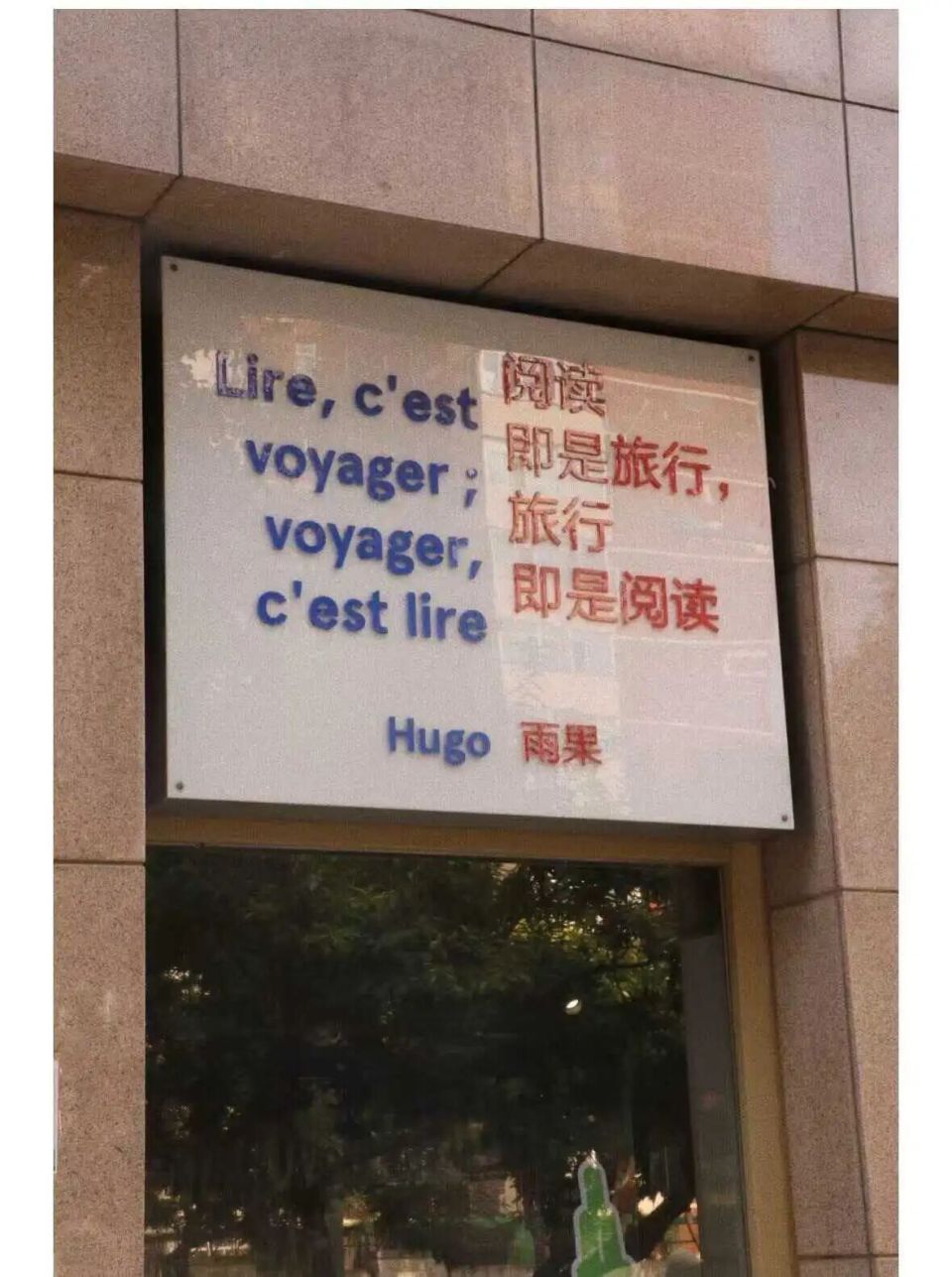 进馆是免费的,门口就用法语写着雨果的那句话,“阅读即是旅行,旅行即是阅读”。