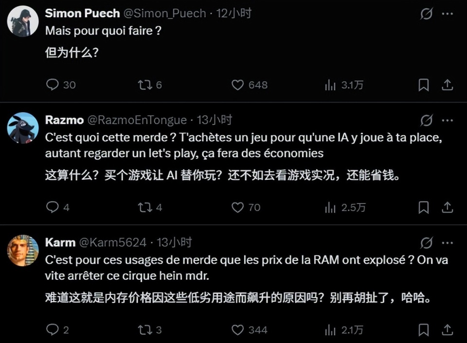 但,觉得没意义的人也挺多的,我打工买了游戏还要给AI打,那不成给AI打工的了吗?