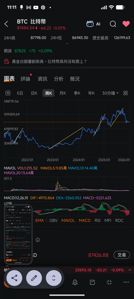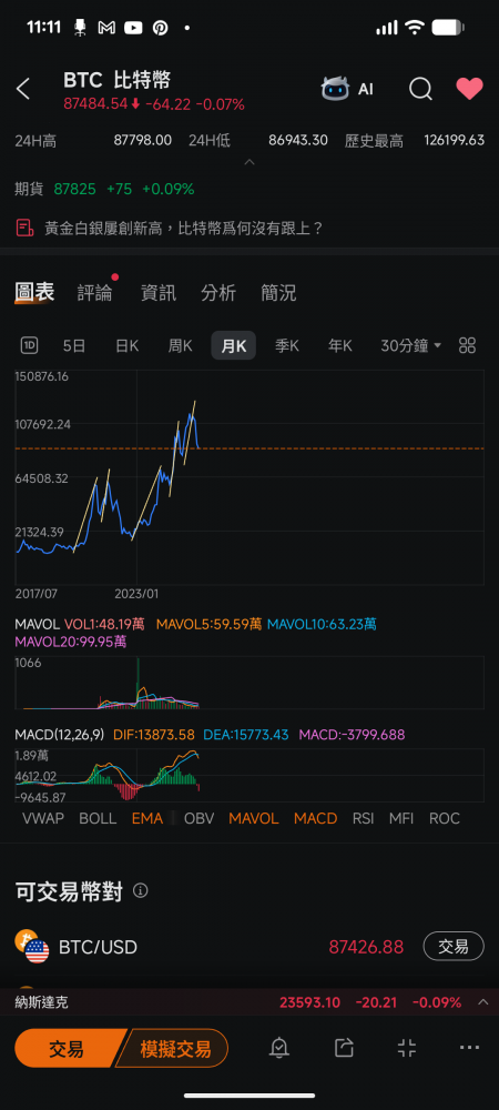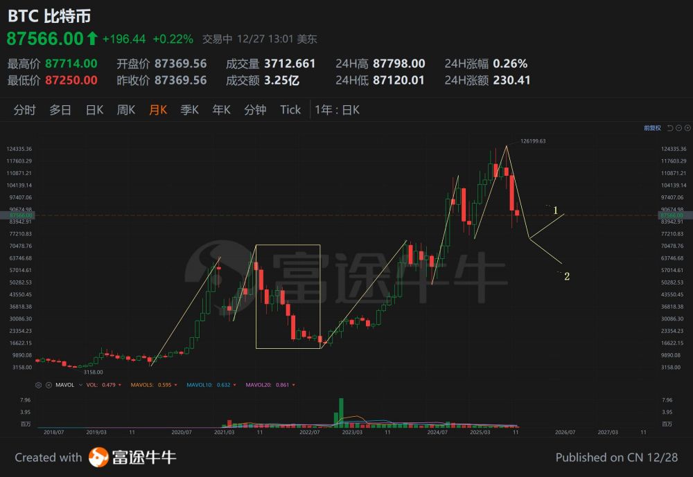 未来3个月:看图,我的论据就是看mcad,日线和周线在震荡,但是月线macd下叉开始了,大概率不会很快结束。同时日线mm做完了wyckoff distribution, 不会这么快结束,至少要横盘3-6个月吧再北上。